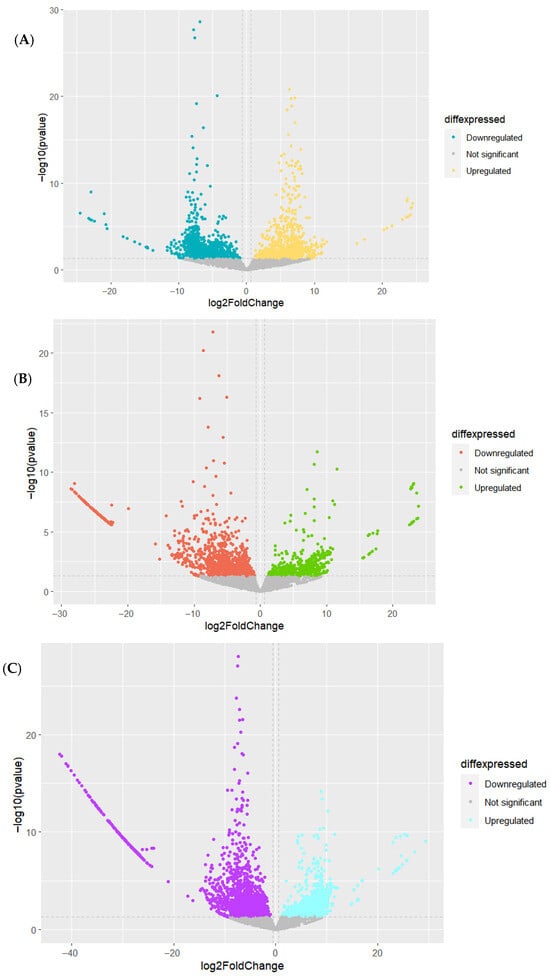 - Love, M.I.; Huber, W.; Anders, S. Moderated estimation of fold change and dispersion for RNA-seq data with DESeq2. Genome Biol. 2014, 15, 550. [Google Scholar] [CrossRef]