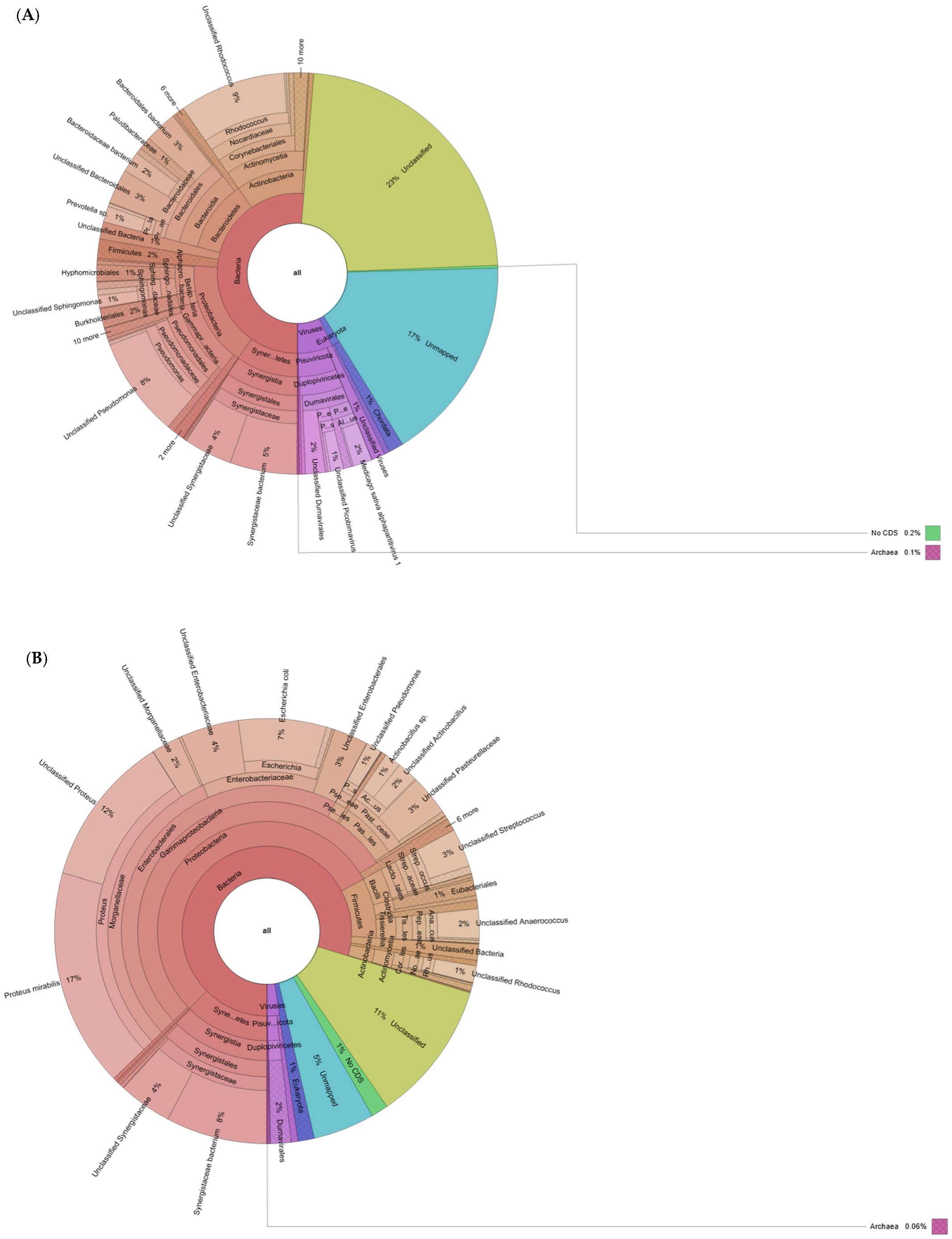 3.1. RNA Sequencing, Mapping, and Taxonomic Characterization