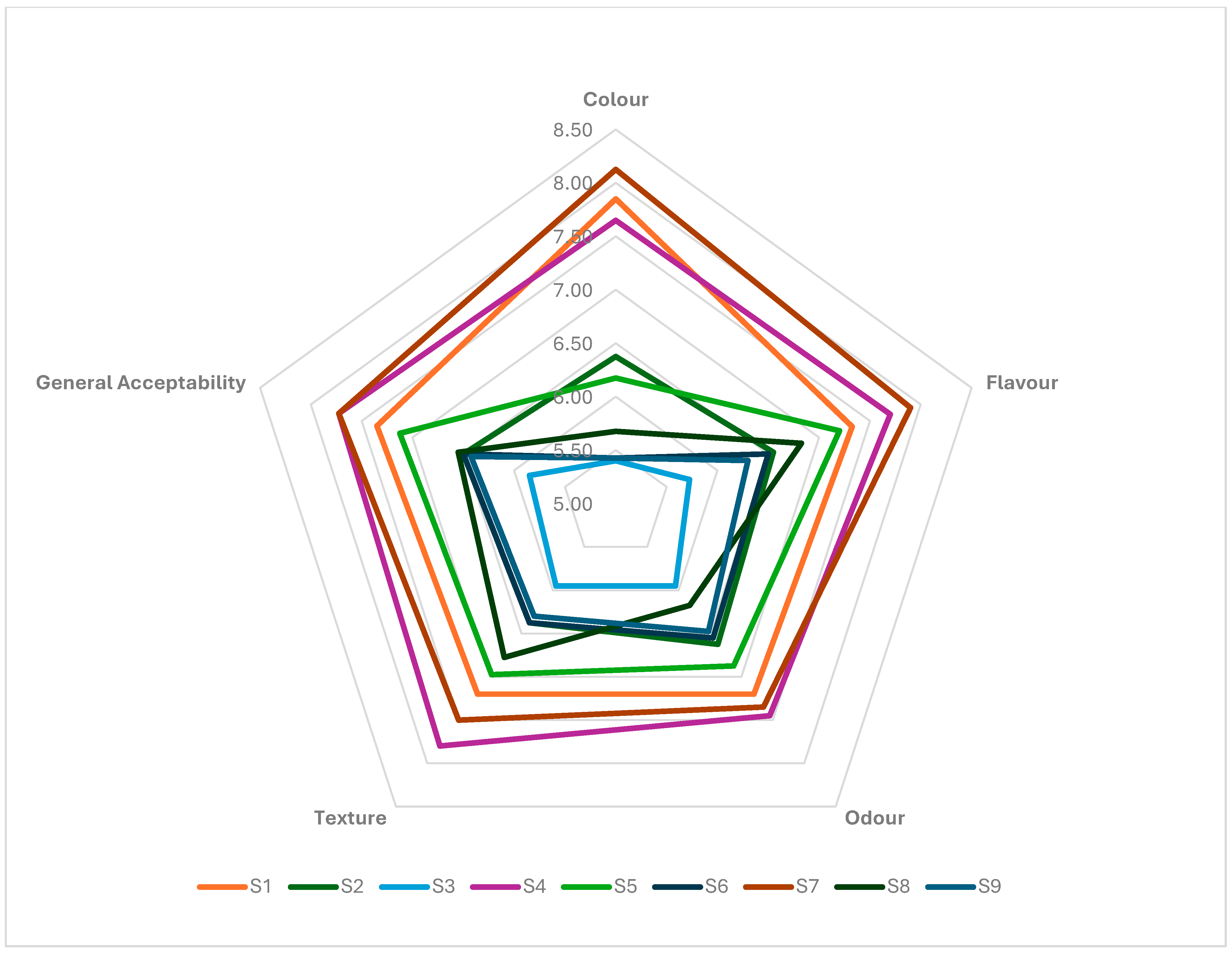 Total Yeast and Mould | S1 | 3.12 ± 0.02 bcd | 4.06 ± 0.01 a |