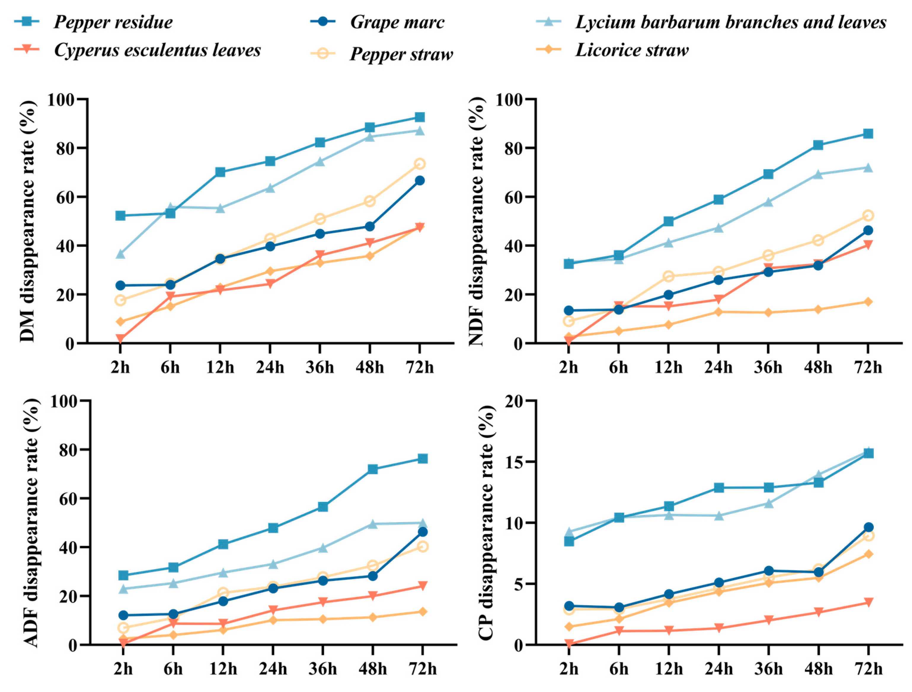 2.2.1. In Situ Nutrient Digestibility