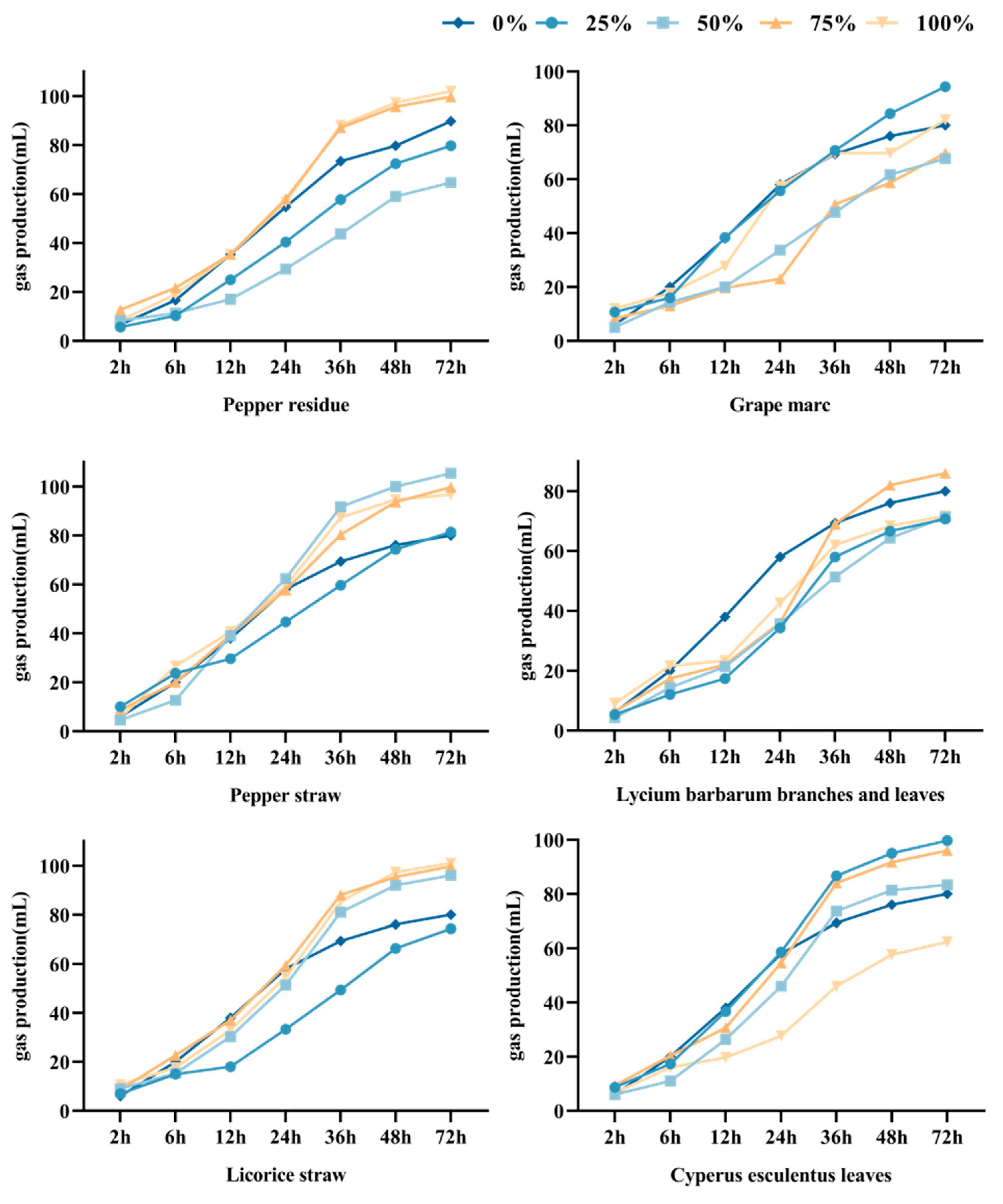3.3.1. In Vitro Gas Production
