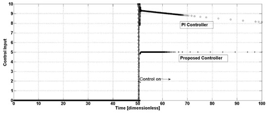 Figure 5 shows the control efforts required by the proposed and the PI controllers.