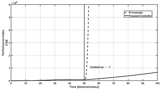 Performance index (ITSE) for the proposed controller and the PI controller.