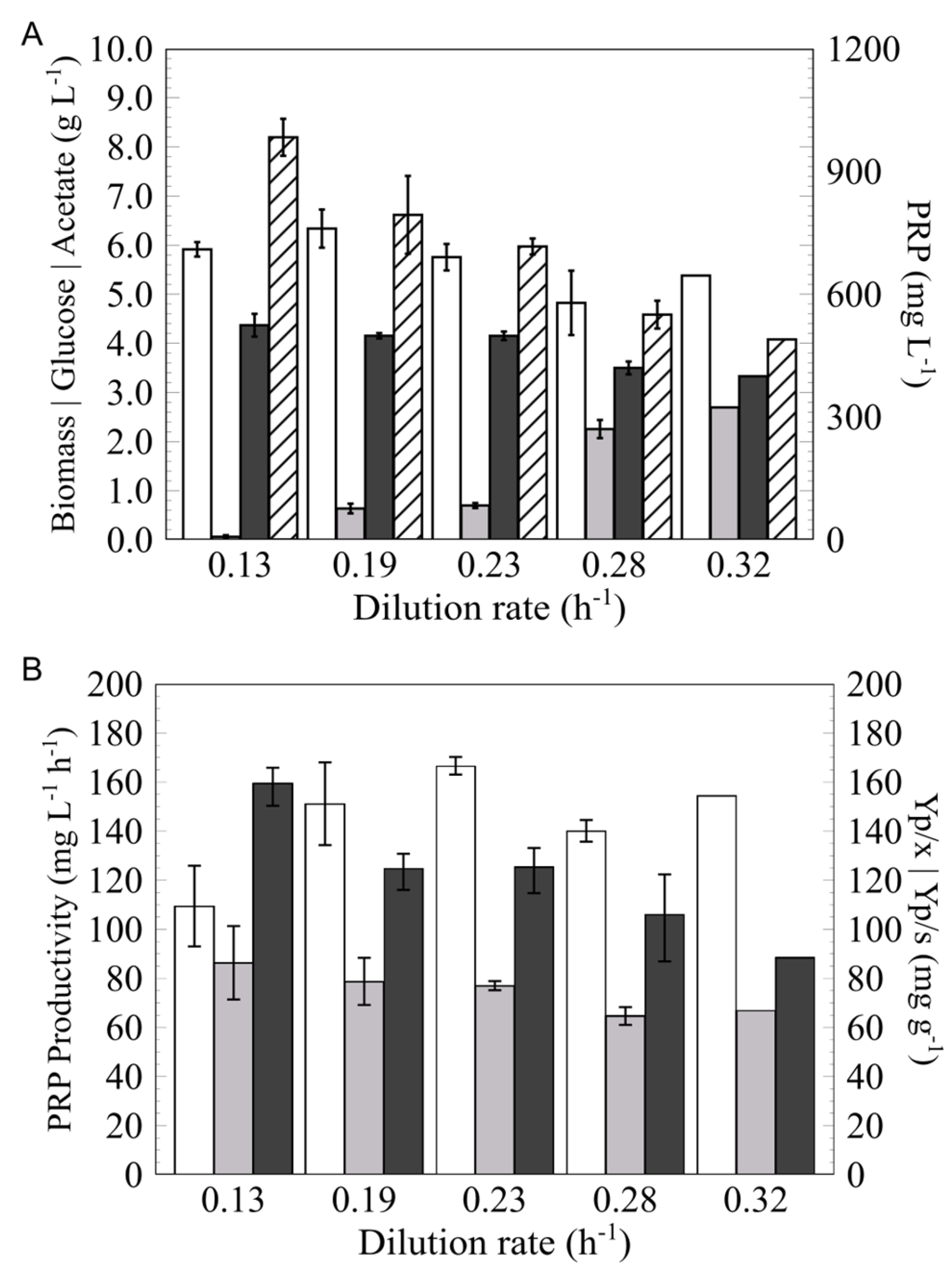 | Rpacetate (g g−1 h−1) | 0.072 ± 0.005 | 0.153 ± 0.006 |