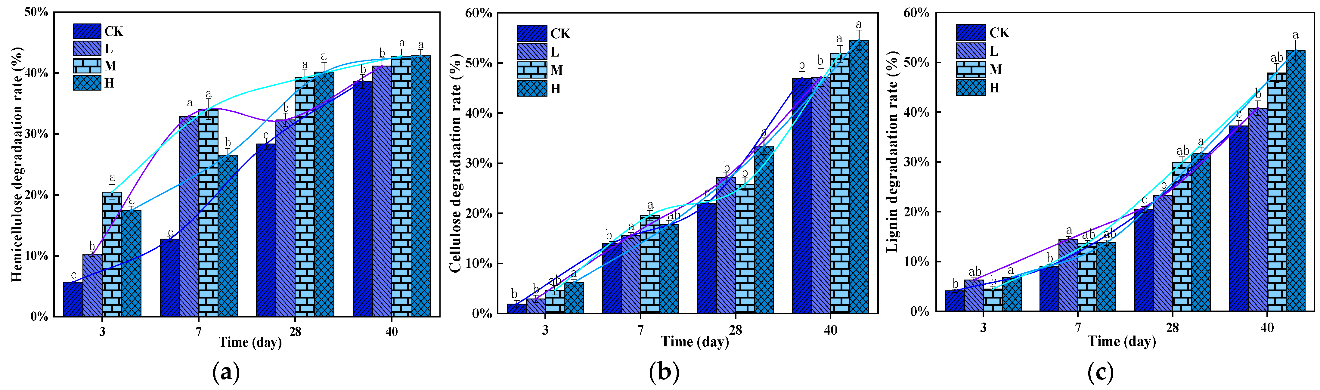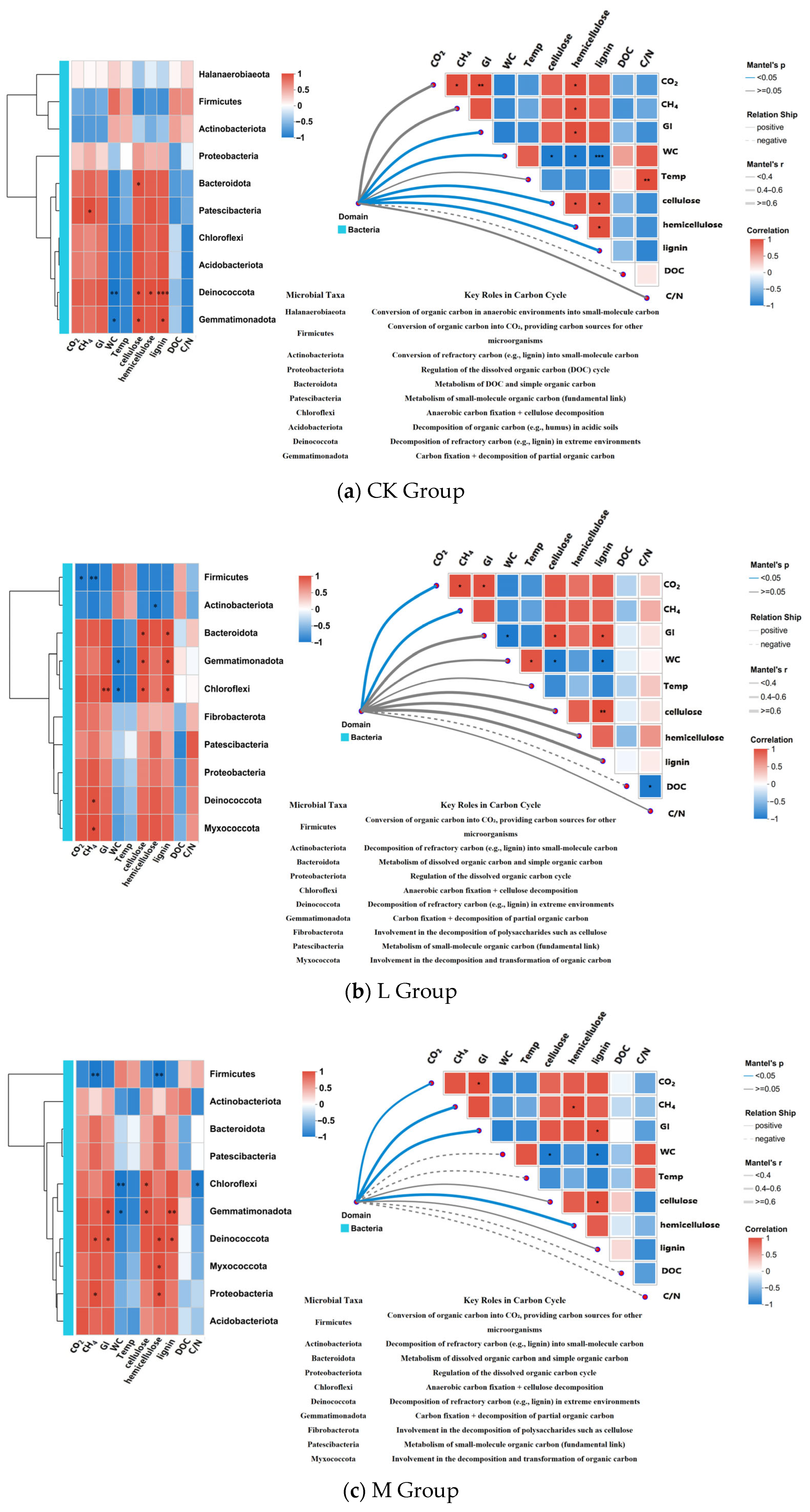 3.6.1. Effects of Microorganisms and Environmental Factors in Each Treatment Group on the Degradation of Cellulose, Lignin, and Hemicellulose