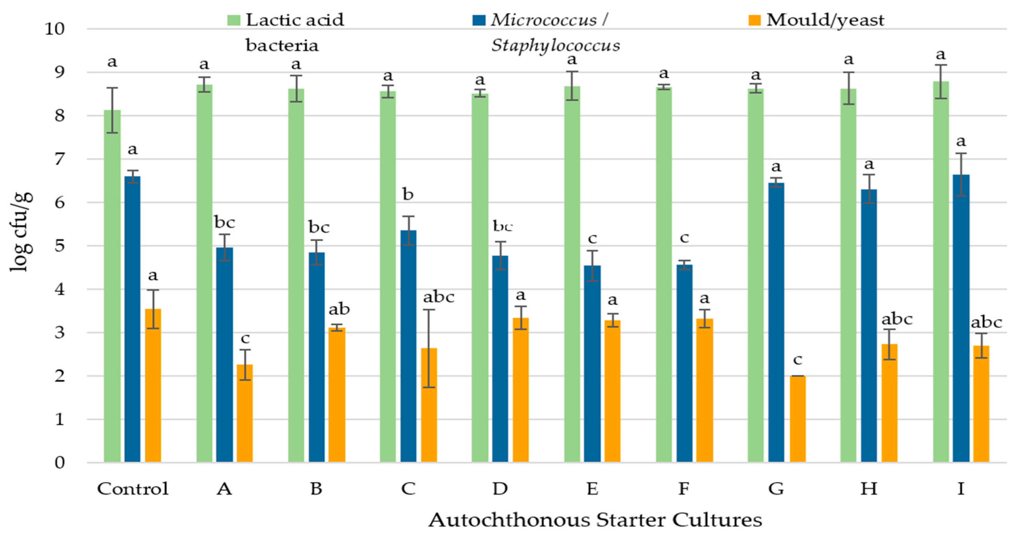 - Rossi, F.; Tucci, P.; Del Matto, I.; Marino, L.; Amadoro, C.; Colavita, G. Autochthonous cultures to improve safety and standardize quality of traditional dry fermented meats. Microorganisms 2023, 11, 1306. [Google Scholar] [CrossRef]
