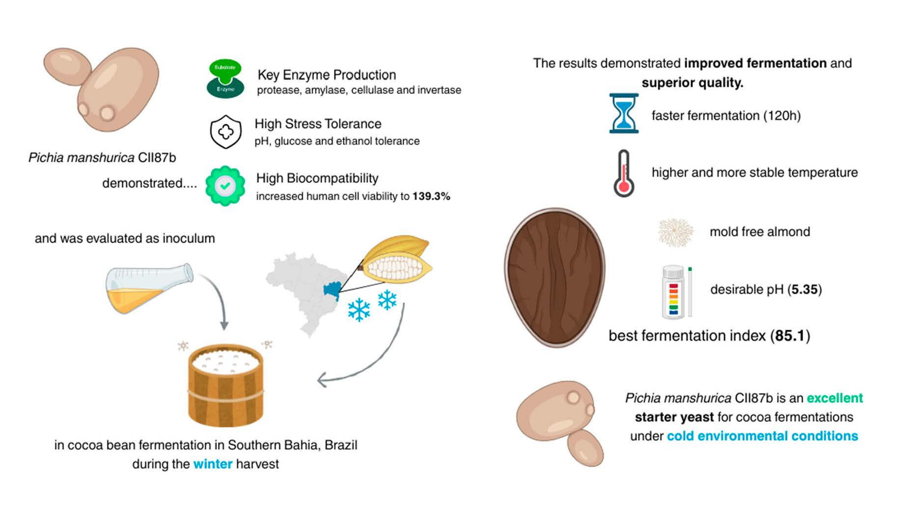 Silva ABdCe, Marques EdLS, Rezende RP, Santana C, Freitas AM, Bessa Souza MC, Santos CMd, Ferreira ACR, Soares MR, Díaz AM, et al. Use of Pichia manshurica as a Starter Culture for Spontaneous Cocoa Fermentation in Southern Bahia, Brazil. Fermentation. 2025; 11(12):694. https://doi.org/10.3390/fermentation11120694