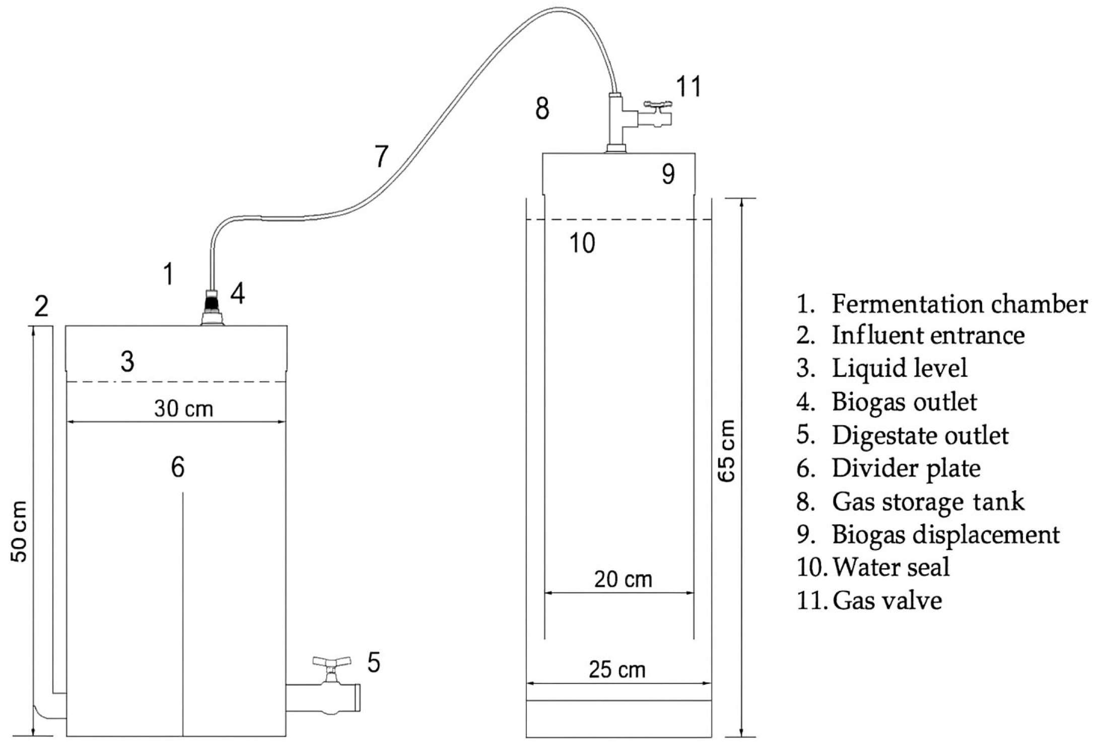 Schematic cross-sectional design of the semi-continuous biodigester [22].