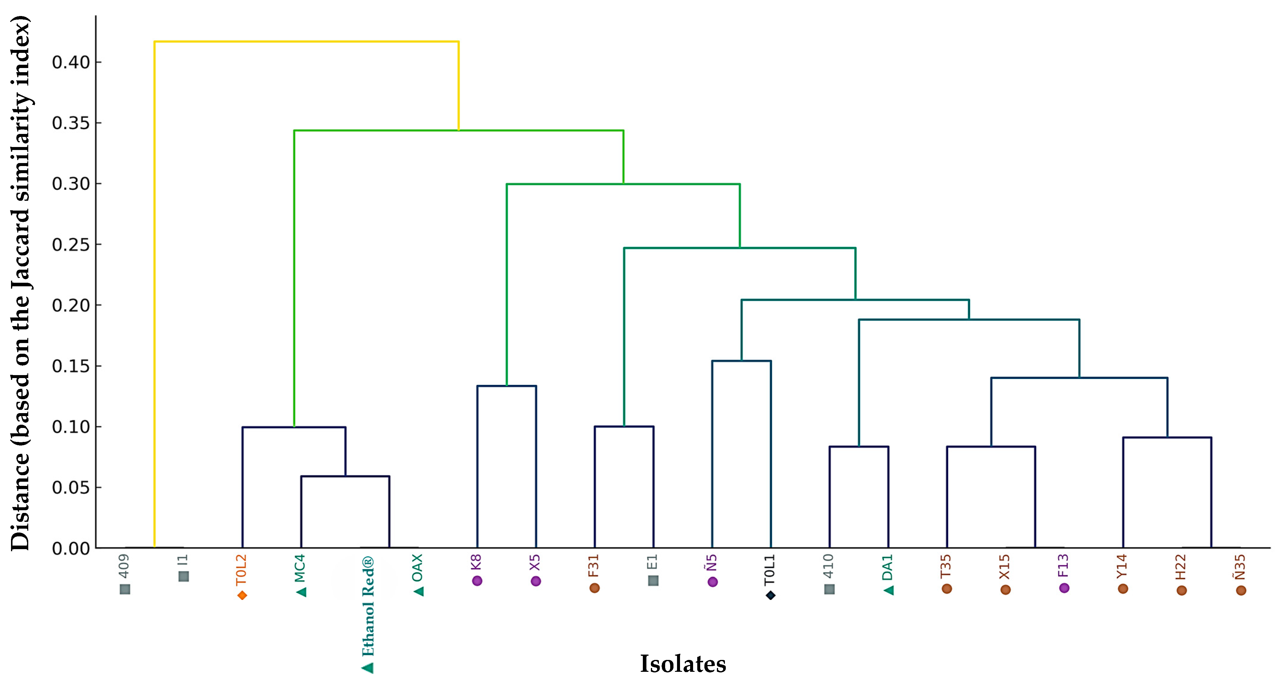 | DA1, Oax, MC4 | Mezcal | Oaxaca | −80 °C/Glycerol 1:1 | Industrial Lab./CIATEJ |
