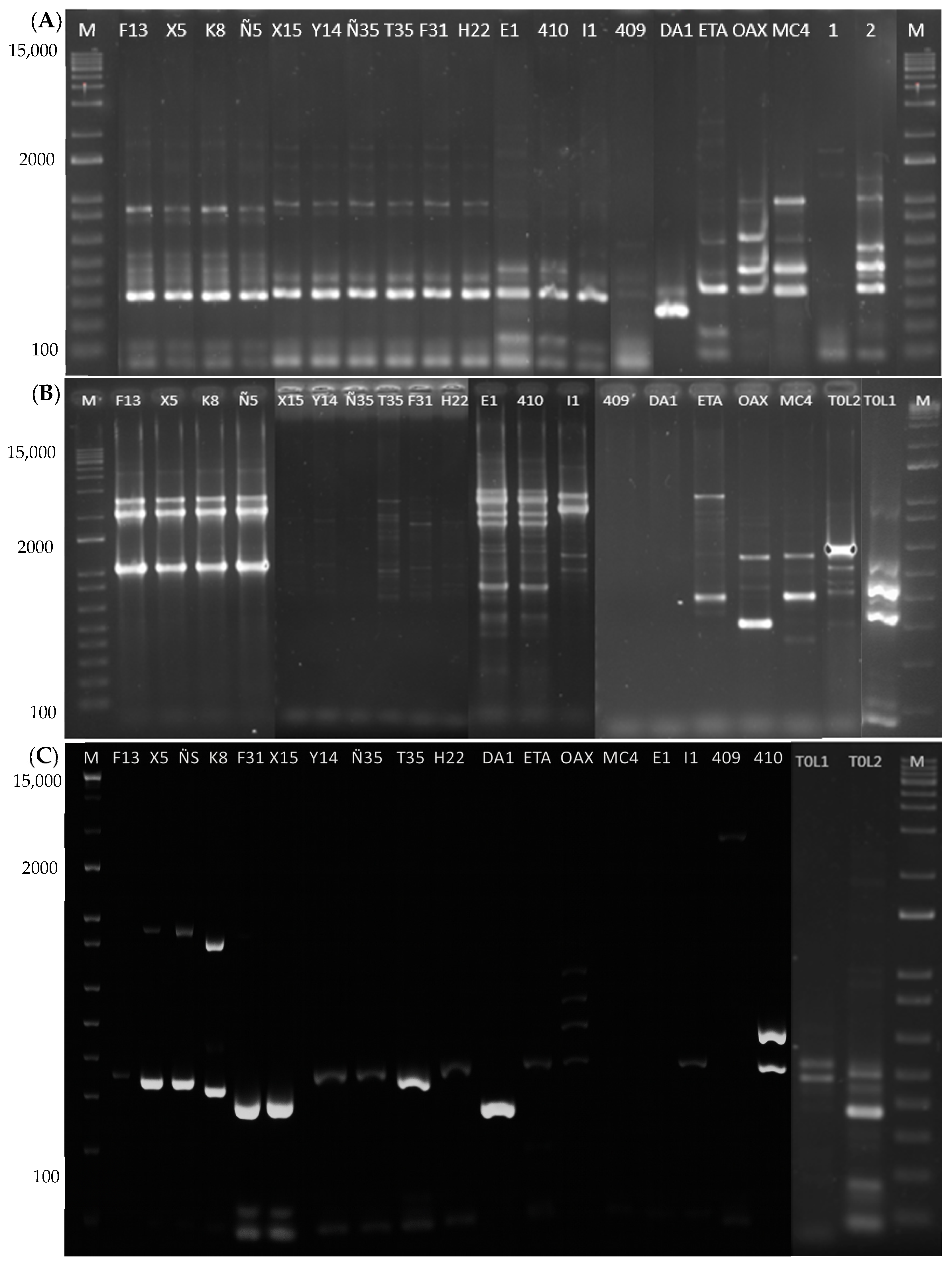 | X15, Y14, Ñ35, T35, F31, H22 | Taberna | Benito Juarez, Villaflores, Chiapas | −80 °C/Glycerol 1:1 | Biotecnology Lab./ UNICACH |