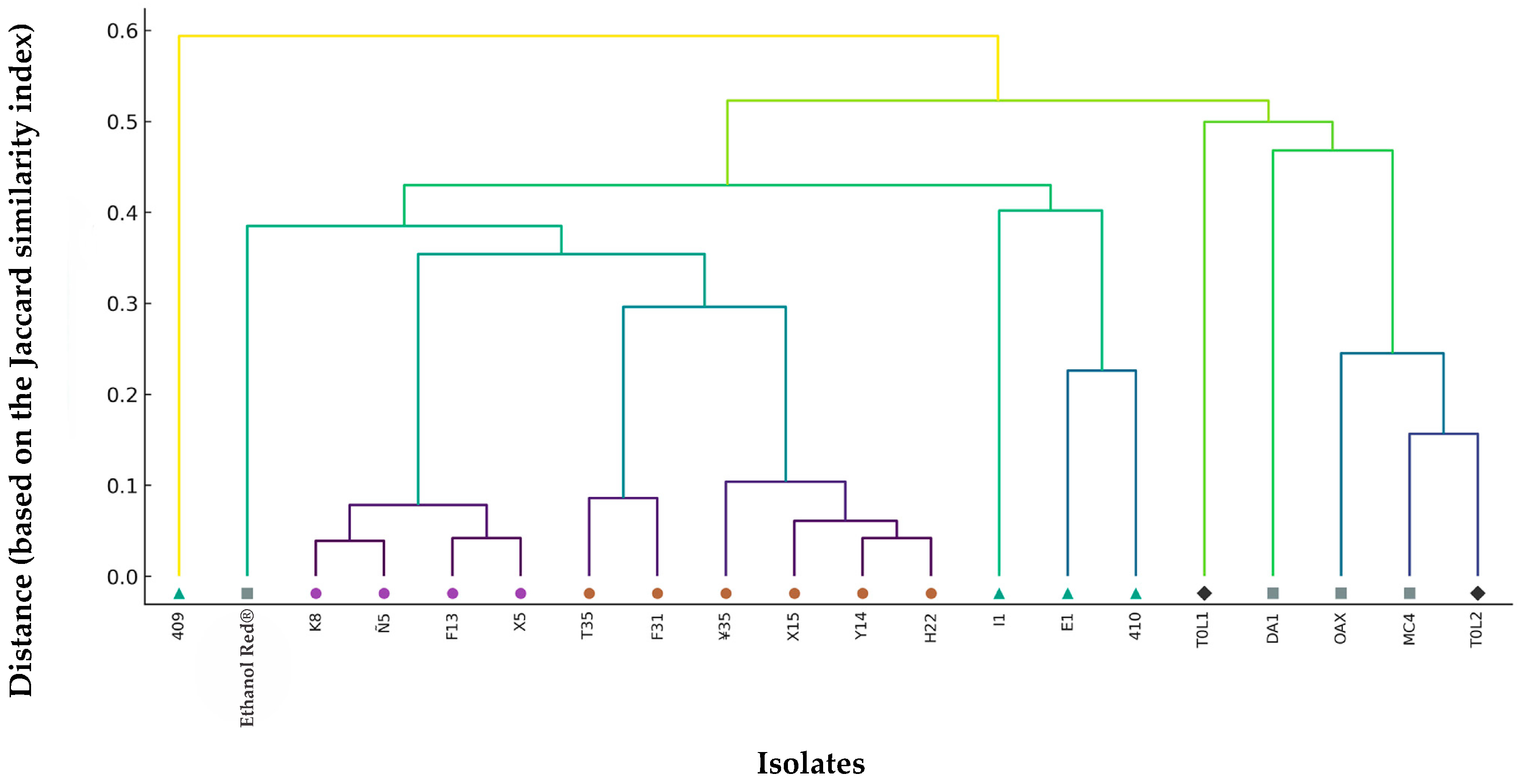 - Lachance, M. Yeast communities in a natural tequila fermentation. Antonie van Leeuwenhoek 1995, 68, 151–160. [Google Scholar] [CrossRef]