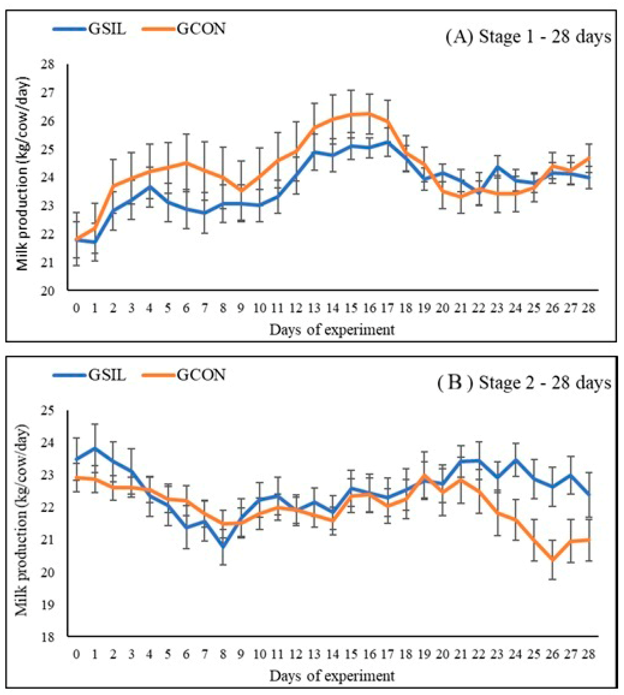 | Variables | GSIL | GCON | SEM | p-Treat 1 | p-Treat × Day 2 |