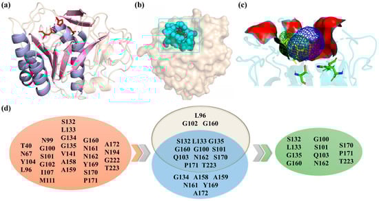 Additionally, three flexible loops adjacent to the active site form two tunnel-like structures that further affect substrate accessibility (Figure 1c). This suggests that the tight fit and restricted access to the substrate binding site may limit the enzyme’s efficiency in hydrolyzing keratin. To address this issue, we employed rational design strategies such as alanine scanning to reduce steric hindrance within the binding pocket. By replacing bulky amino acid residues with smaller alanine residues, the goal was to open the binding site and allow for better substrate entry, ultimately enhancing the enzyme’s activity [26,27].