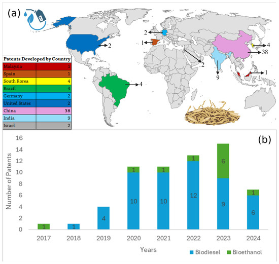 - Xu, G.; Zhao, S.; Zhao, Q.; Zhou, J.; Liu, Y. New Lipase Mutant Useful for Synthesizing Biodiesel Using Vegetable Oil and Fat as Substrate-Derwent Innovations Index Hunan Flag Biotechnology Co., Ltd., (HUNA-Non-Standard); CN113943721(A). 2022. Available online: https://www-webofscience-com.ez22.periodicos.capes.gov.br/wos/diidw/full-record/DIIDW:202219254F (accessed on 6 December 2024).