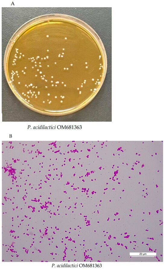 - Fugaban, J.I.I.; Bucheli, J.E.V.; Park, Y.J.; Suh, D.H.; Jung, E.S.; Ivanova, I.V.; Holzapfel, W.H.; Todorov, S.D. Antimicrobial Properties of Pediococcus acidilactici and Pediococcus pentosaceus Isolated from Silage. J. Appl. Microbiol. 2022, 132, 311–330. [Google Scholar] [CrossRef] [PubMed]