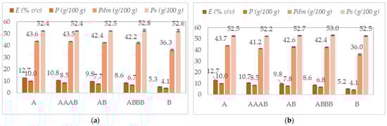 | Parameter | A-Starch Milk | AAAB-Starch Milk | AB-Starch Milk | AAAB-Starch Milk | B-Starch Milk |
