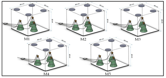 This study was carried out in the Algal Biomass Laboratory of the Department of Agricultural Machinery and Technology Engineering under the Faculty of Agriculture of Isparta University of Applied Sciences. BLD was obtained from AKINCI Biogas and Energy Systems Co. in Afyonkarahisar, Türkiye. For the experiment, five distinct BLD doses were used with three replications (Figure 1). The experiment was carried out in 0.5 L capacity flasks. The duration of the experiment was seven days. Basal medium (Table 1) was added to each treatment at the same ratio in the experiment. The illumination intensity required for cultivation was set to 150 μmol photons/m2/s. The chemical characteristics of the groups are given in Table 2.