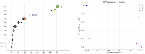 General evaluation of cluster characteristics: Strengths of Cluster 0: The HHV value was the highest with an average value of 37.155, and energy density was high. The OS value had the best OS with an average of 6.745. It had balanced values of LCSF and CFPP. Cold weather performance was fairly satisfactory. Weaknesses of Cluster 0: DU and IV were slightly lower compared to the other clusters. Strengths of Cluster 1: CN was the highest in this cluster with 59.45. This indicated a high combustion quality. LCSF was high at 5.450, indicating good cold air fluidity. Weaknesses of Cluster 1: DU and IV were significantly lower than the other clusters, and product efficiency was lower. Strengths of Cluster 2: DU was the highest in this cluster with 100.315 and was the best group in terms of efficiency. IV offered a good balance of 95.855. Weaknesses of Cluster 2: OS was the lowest in this cluster with 5.880. Cluster 2 stands out in terms of energy efficiency. This group can be preferred in terms of overall production efficiency and balance. In terms of cold weather performance, Cluster 0 provides balance in these metrics. In addition, the high oxidation stability of this group is advantageous for the production of long-lasting fuel. In terms of combustion quality, Cluster 1 had the highest values in terms of CN. However, due to its low DU and IV, it should only be preferred if combustion quality is a priority. In terms of waste efficiency, Cluster 0 can be preferred.