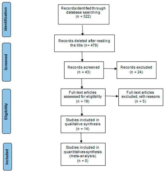 After this meticulous process, the final selection comprised 14 studies that fully met the inclusion criteria and were directly aligned with the aims of the systematic review. Figure 1 shows the flow diagram for the identification and selection of articles for the study.