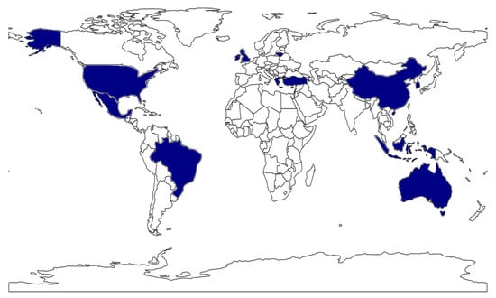 Figure 2. Global distribution of the kefir studies reviewed in this paper. Countries highlighted in blue represent those with studies included in the review.