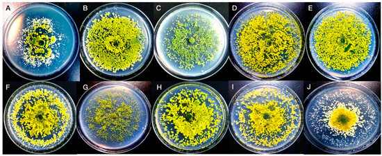 Colony morphology on CMC-Na plates was assessed after 4 days of incubation at 30 °C. Parameters evaluated included colony diameter, texture, pigmentation, zonation patterns, and sporulation intensity.