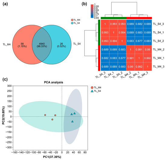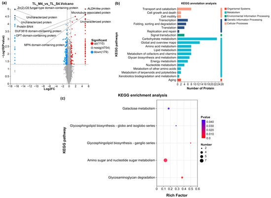 For proteome analysis, extracellular proteins were extracted from day 5 fermentation samples by adding deionized water, shaking at 180 rpm for 1 h using a shaking incubator (HZQ-X300, Hangzhou Huier Instrument Equipment Co., Ltd., Hangzhou, China), followed by centrifugation using an ultracentrifuge (Optima XPN-100, Beckman Coulter, Brea, CA, USA) and filtration through a 0.22 µm membrane (Millipore, Burlington, MA, USA). The supernatants were concentrated by lyophilization using a freeze dryer (FreeZone 2.5, Labconco, Kansas City, MO, USA) and stored at −80 °C (Forma 900, Thermo Fisher Scientific, Waltham, MA, USA).