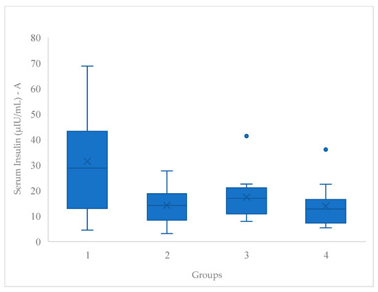 Post-serum insulin (µIU/mL) box and whisker plot.