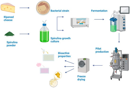 - Tolpeznikaite, E.; Bartkevics, V.; Skrastina, A.; Pavlenko, R.; Ruzauskas, M.; Starkute, V.; Zokaityte, E.; Klupsaite, D.; Ruibys, R.; Rocha, J.M.; et al. Submerged and Solid-State Fermentation of Spirulina with Lactic Acid Bacteria Strains: Antimicrobial Properties and the Formation of Bioactive Compounds of Protein Origin. Biology 2023, 12, 248. [Google Scholar] [CrossRef]