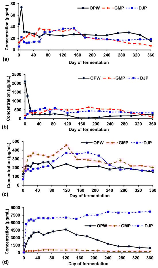 - Punniamoorthy, R.; Lee, W.S.; Loh, Q.P.; Goh, Y.; Tay, K.X.; Wong, K.H.; Ho, L.Y.; Sit, N.W. Biochemical Content, Antimicrobial, and Larvicidal Activities of Jiaosu Derived from Different Combinations of Fruit Wastes. Waste Biomass Valorization 2024, 15, 6927–6939. [Google Scholar] [CrossRef]