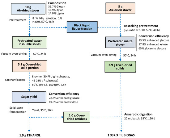 - Zuo, Z.; Tian, S.; Chen, Z.; Li, J.; Yang, X. Soaking pretreatment of corn stover for bioethanol production followed by anaerobic digestion process. Appl. Biochem. Biotechnol. 2012, 167, 2088–2102. [Google Scholar] [CrossRef]