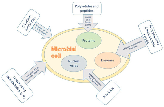 - Willems, T.; De Mol, M.L.; De Bruycker, A.; De Maeseneire, S.L.; Soetaert, W.K. Alkaloids from marine fungi: Promising antimicrobials. Antibiotics 2020, 9, 340. [Google Scholar] [CrossRef]