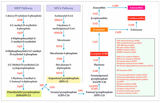 - Li, M.; Xia, Q.; Zhang, H.; Zhang, R.; Yang, J. Metabolic Engineering of Different Microbial Hosts for Lycopene Production. J. Agric. Food Chem. 2020, 68, 14104–14122. [Google Scholar] [CrossRef] [PubMed]