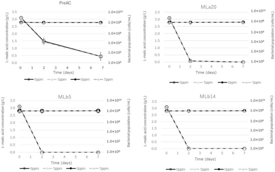3.7. Comparison of MLF Activity in Koshu Model Wine Medium