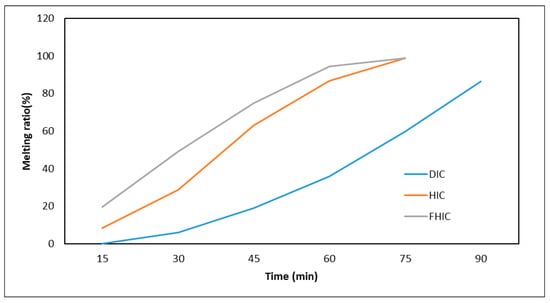 The initial melting time, melting time, and overrun of DIC, HIC, and FHIC.