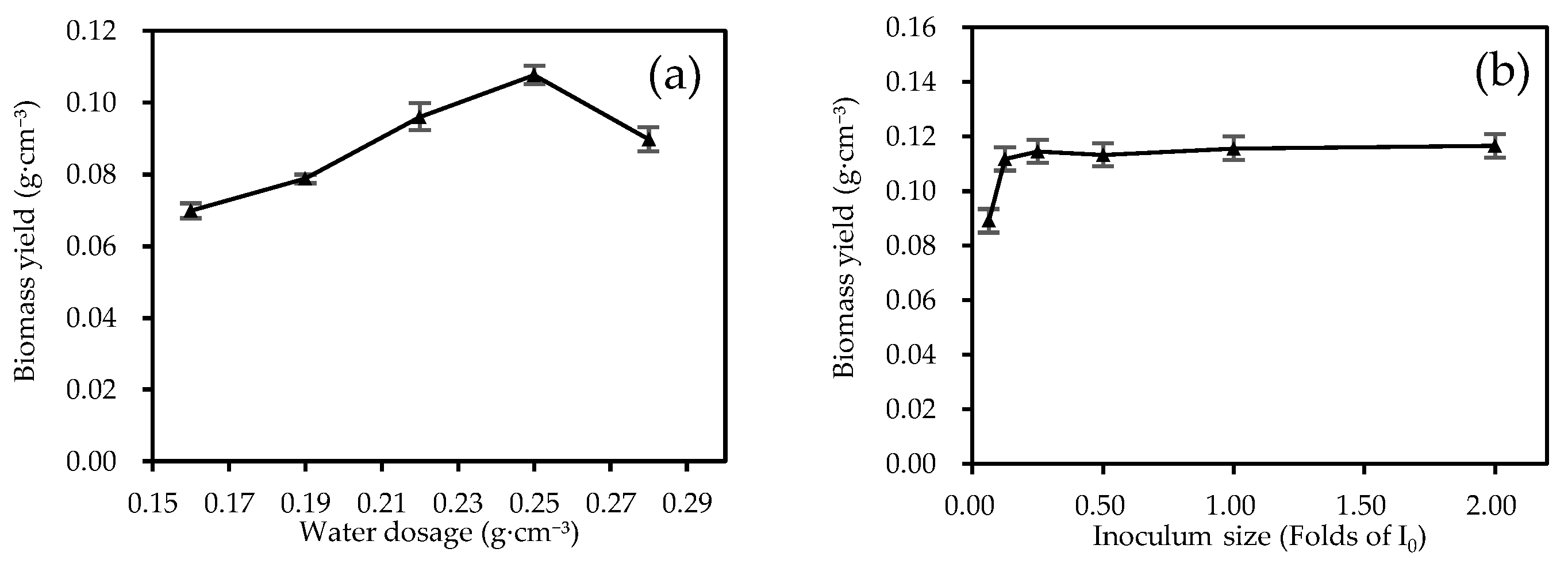 | Run No. | Carbon Source Dosage (B) g·cm−3 | Nitrogen Source Dosage (C) g·cm−3 | Water Dosage (D) g·cm−3 | Biomass Yield g·cm−3 |