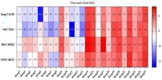 Heatmap of docking scores between COF components and Keap1/Nrf2/HO-1/GPX4.