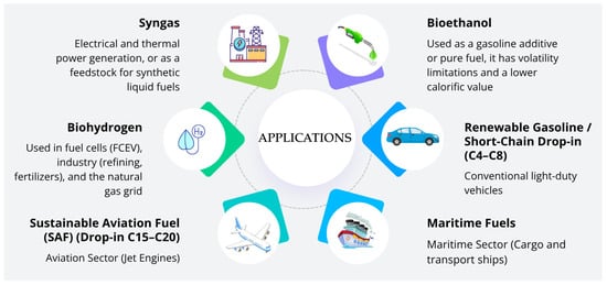 Despite the advances in studies involving the production of biofuels, most are not fully compatible with current fossil fuel-based engines and supply systems, requiring blends with nonrenewable fuel sources, such as gasoline, or even adaptations in the engines [119,120]. Given this issue, various studies aim to produce fuels with properties similar to those currently used, such as gasoline, diesel, and aviation kerosene [121,122,123].