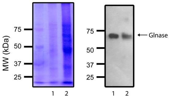 3.6. The Glnase from R. mucilaginosa Cross-Reacts with a Mammalian Glnase Antibody