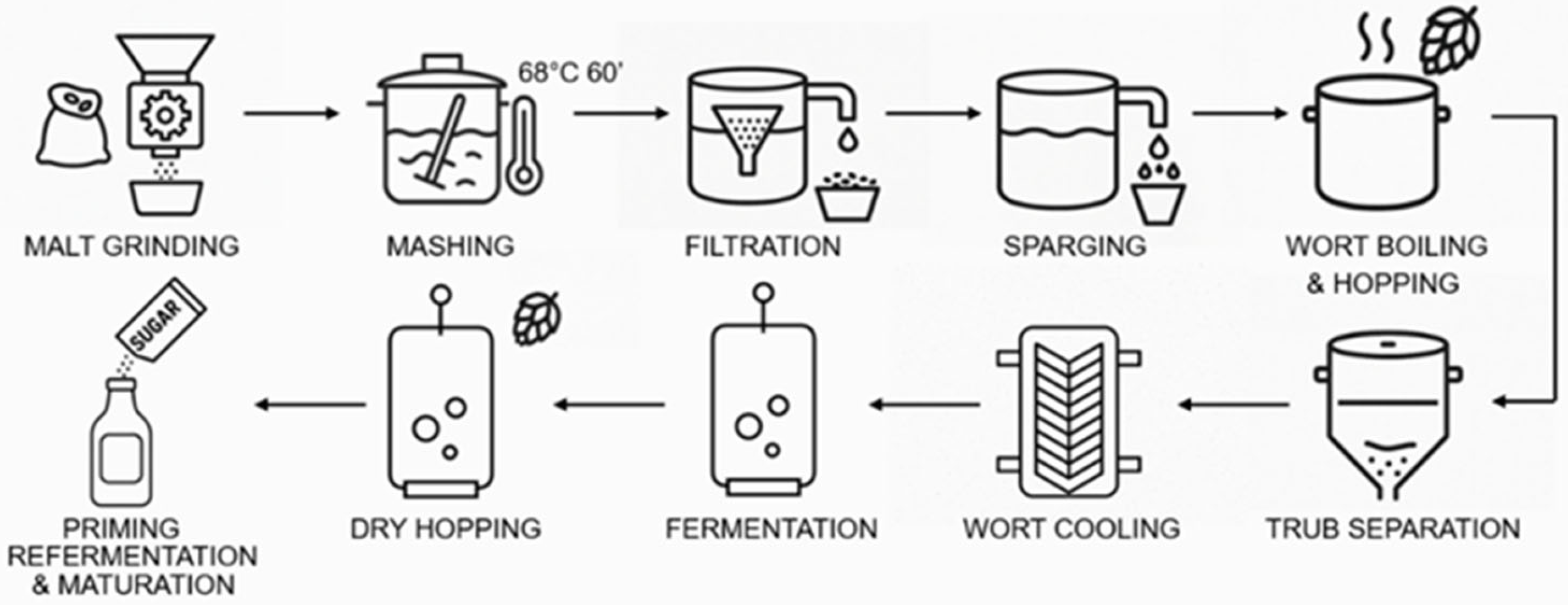 - Villacreces, S.; Blanco, C.A.; Caballero, I. Developments and characteristics of craft beer production processes. Food Biosci. 2022, 45, 101495. [Google Scholar] [CrossRef]