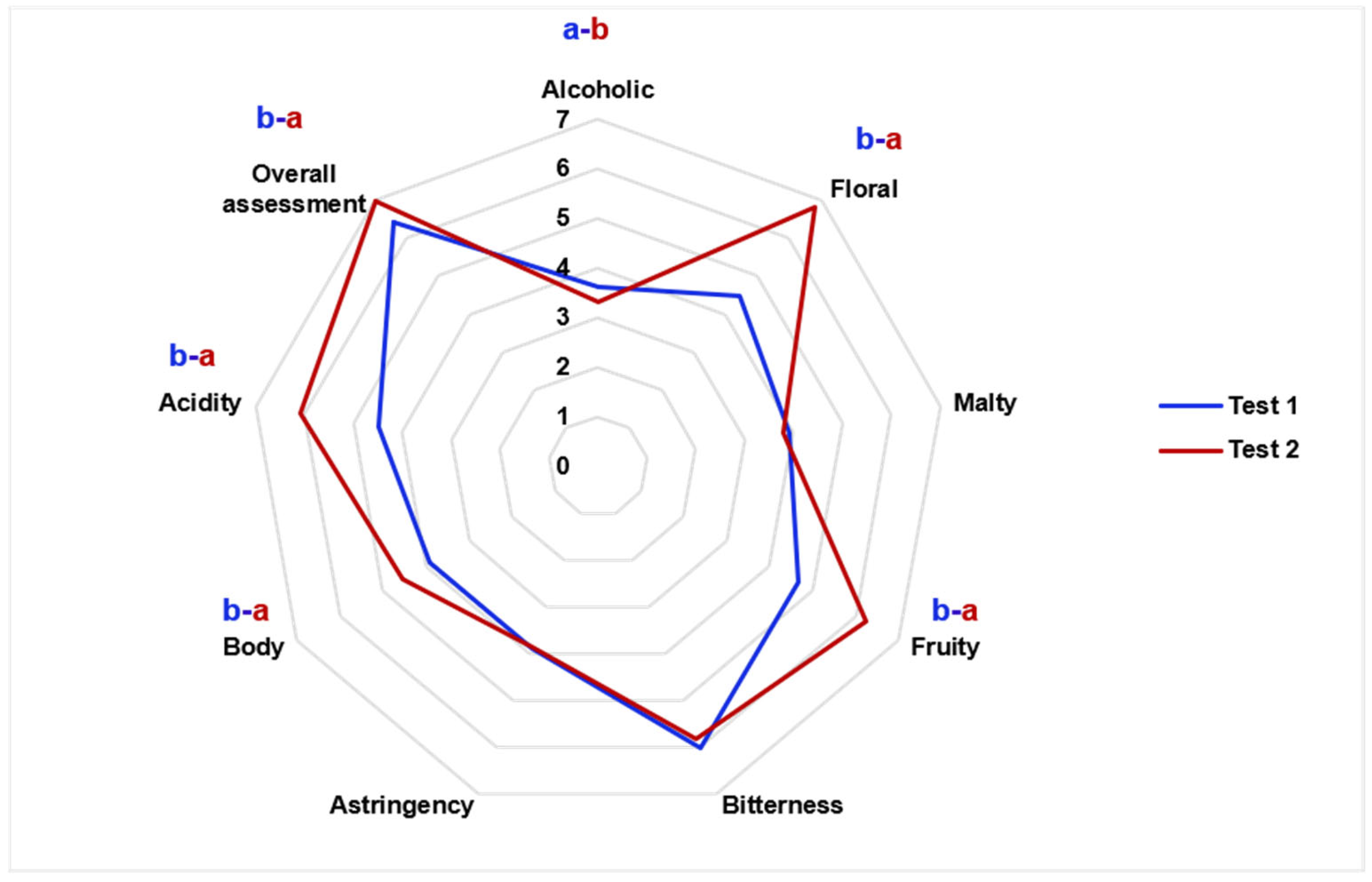 | Bitterness (IBU) | 41.5 ± 1.62 a | 42.1 ± 1.58 a | 40.4 ± 1.83 a | 41.0 ± 1.24 a |