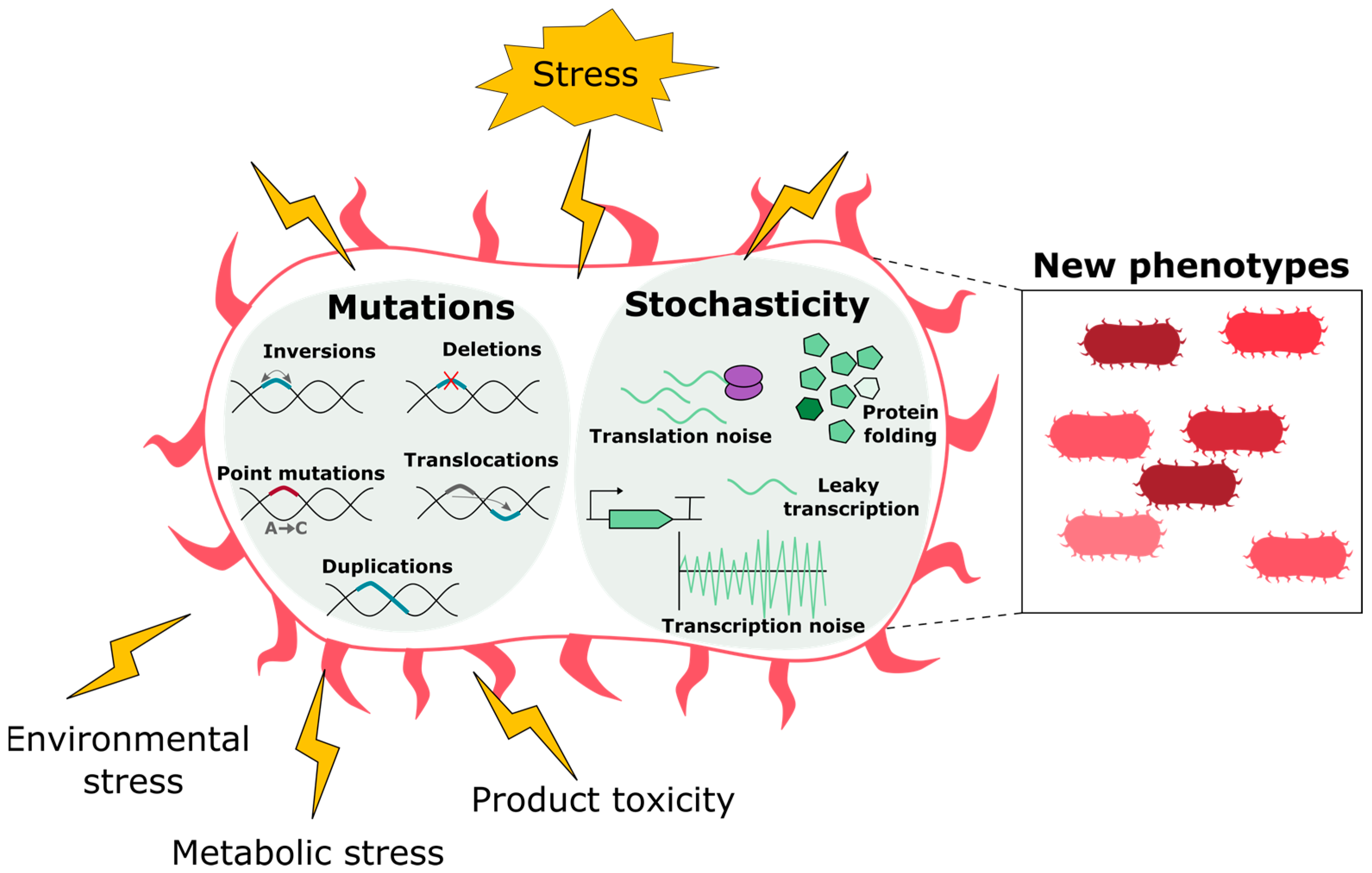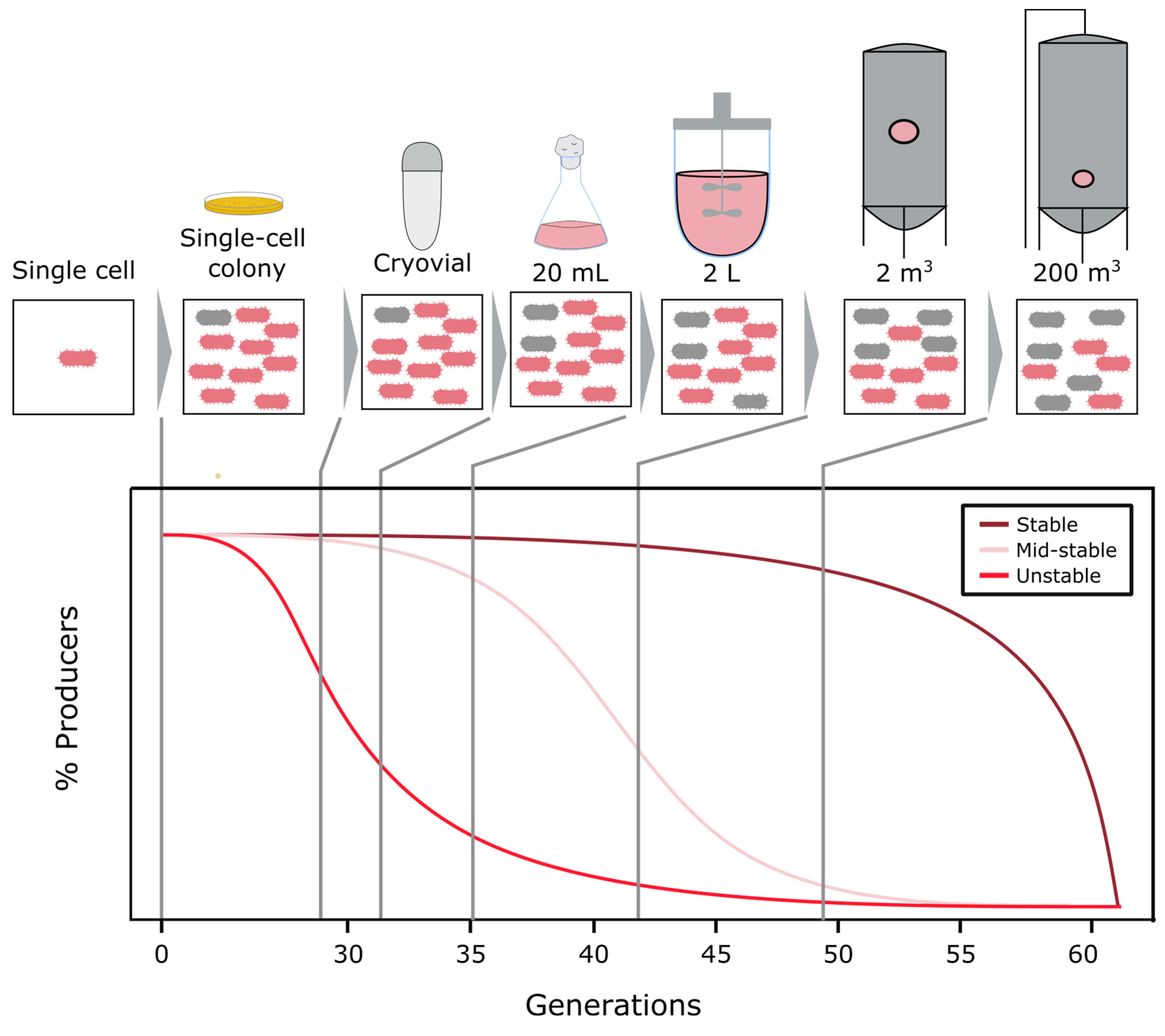- Rugbjerg, P.; Sommer, M.O.A. Overcoming genetic heterogeneity in industrial fermentations. Nat. Biotechnol. 2019, 37, 869–876. [Google Scholar] [CrossRef]