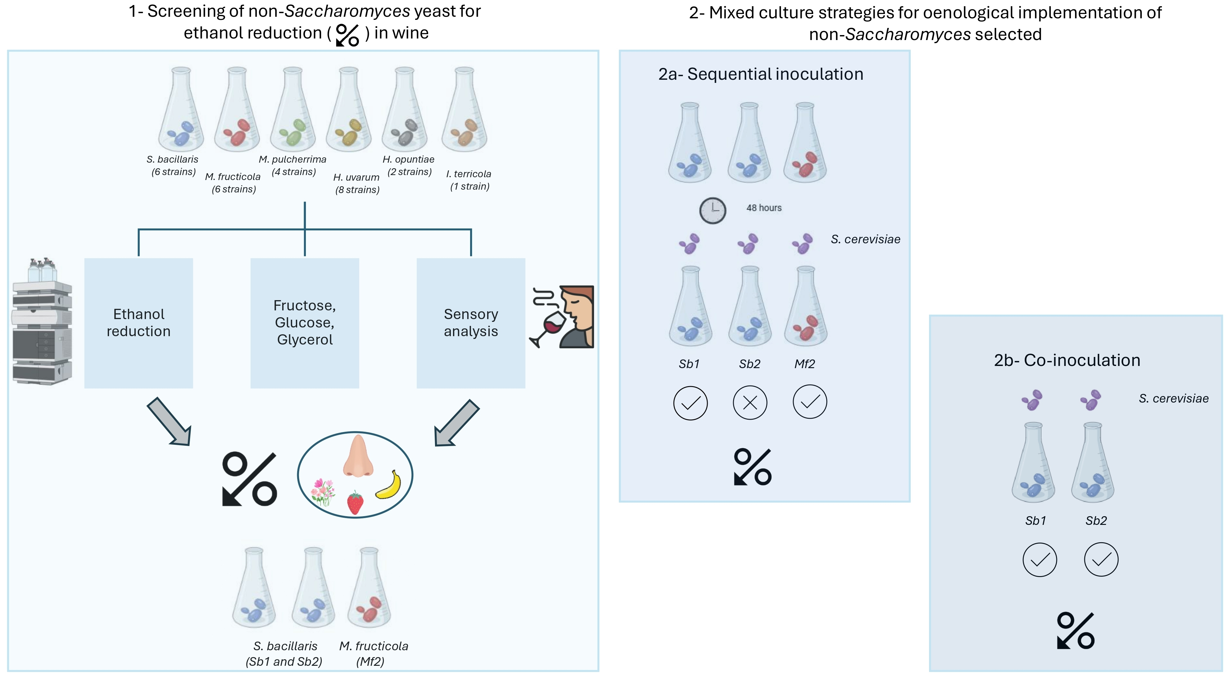 | Sequential | Sb2 + Sc | NS: 1 × 106 | At 48 h: 50 mg N/L DAP + 50 mg N/L AAs + DAP; 2.5 mg/L yeast extract; 0.3 mg/L thiamine |