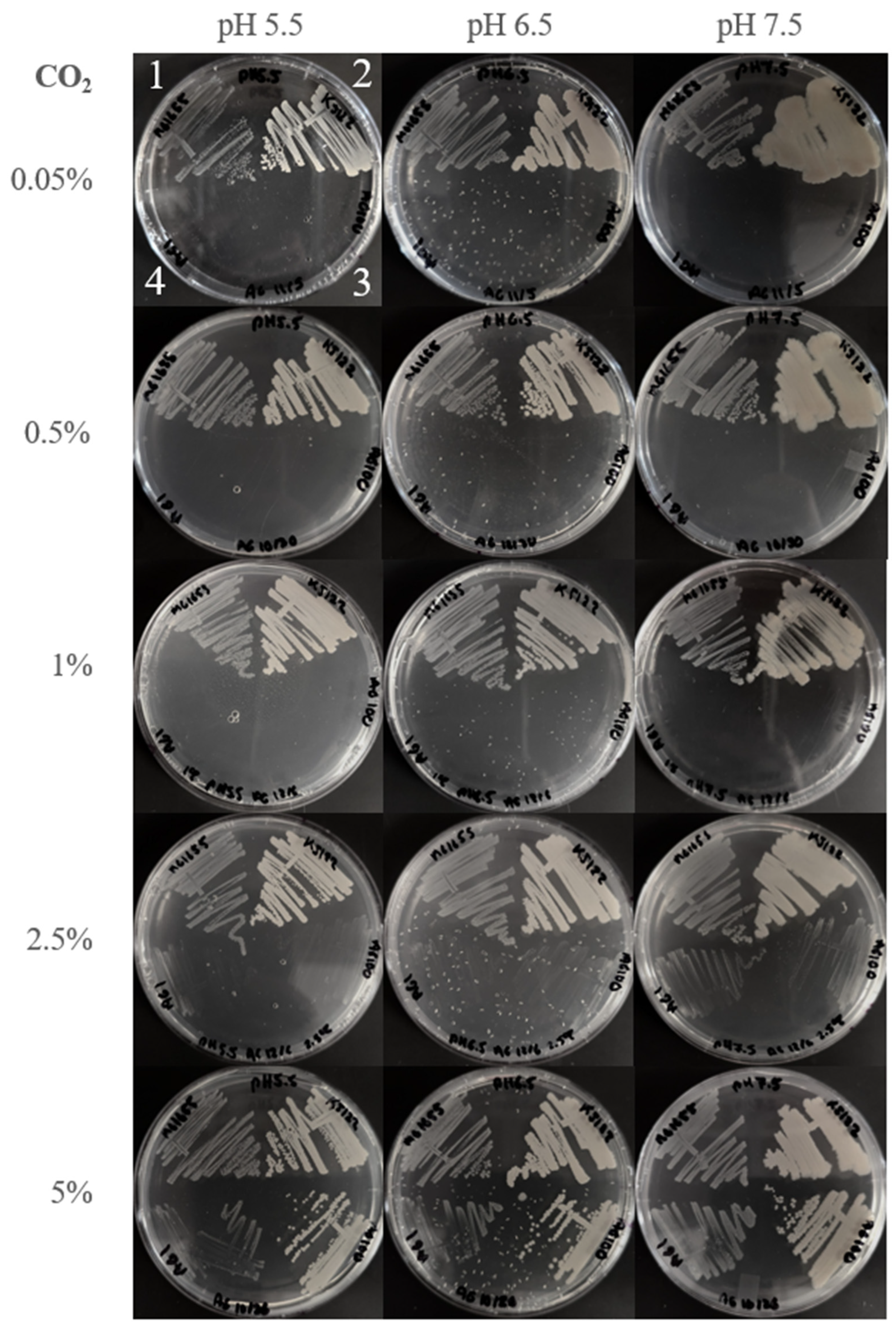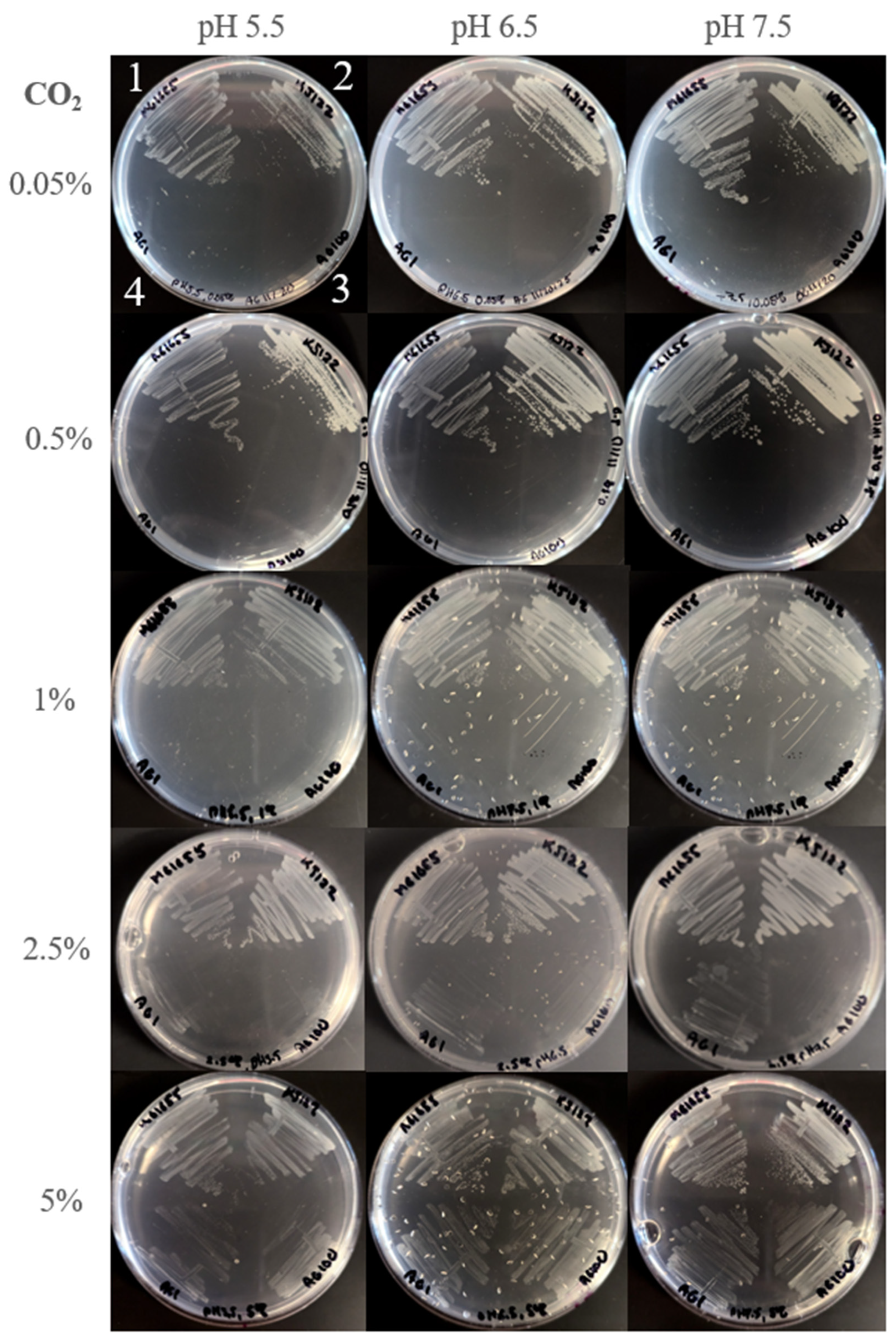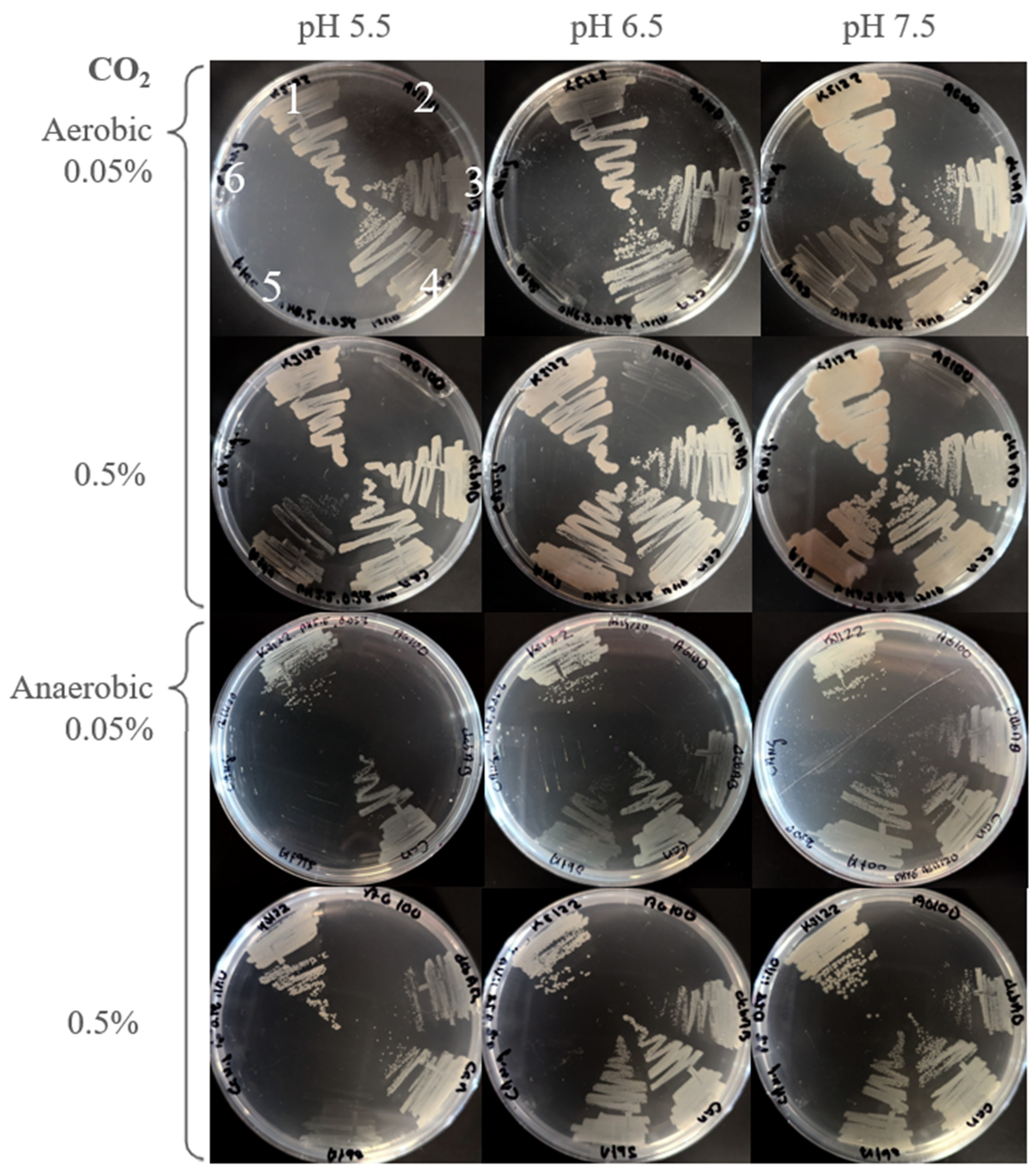 2.3. Cultivation on Agar Plates Under Controlled Atmospheric Conditions