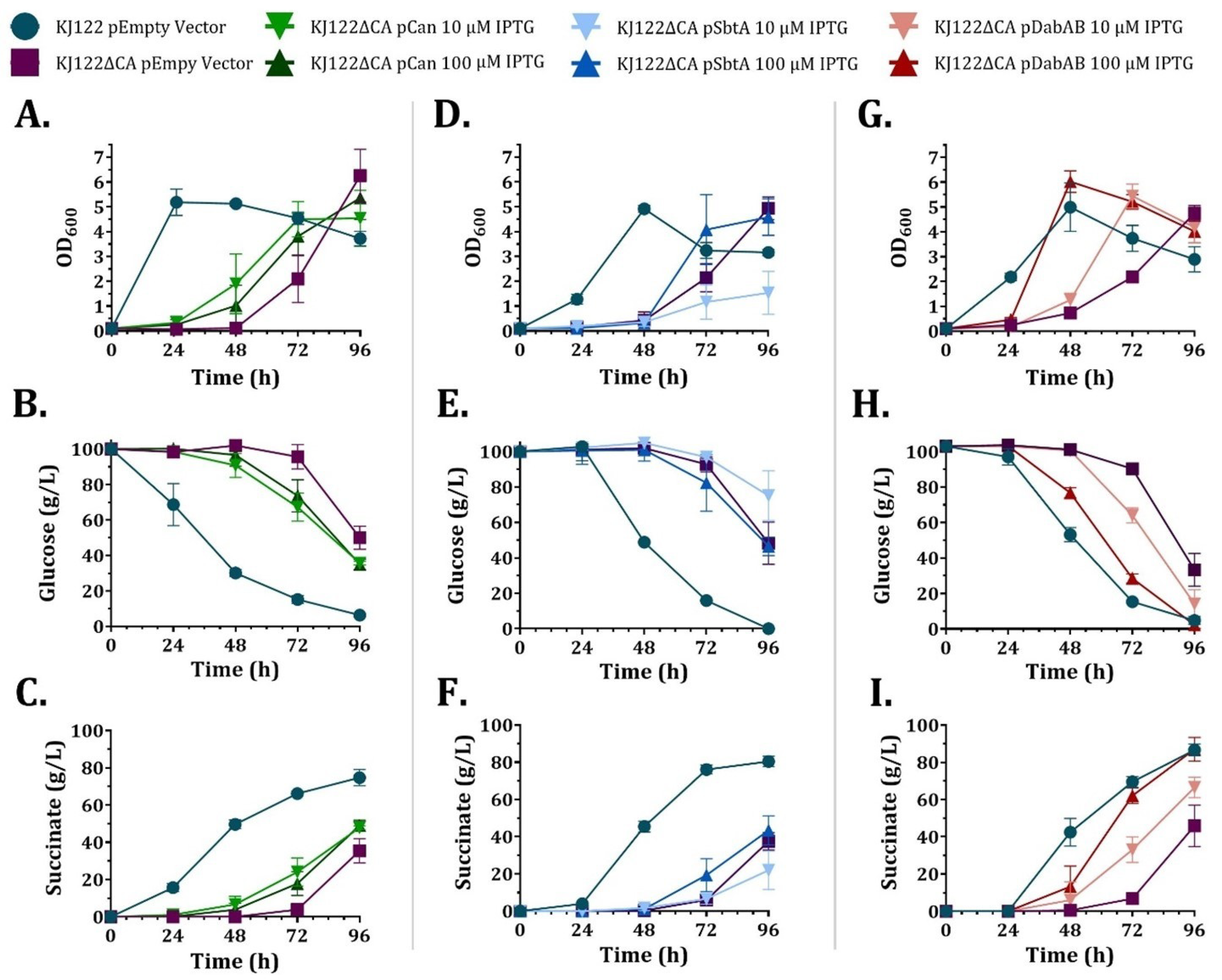 | CCM Component Expressed | Glucose Consumed (g/L) | Succinate Produced (g/L) | Yield (gsuccinate/gglucose) | Succinate Production Rate (g/L-h) |