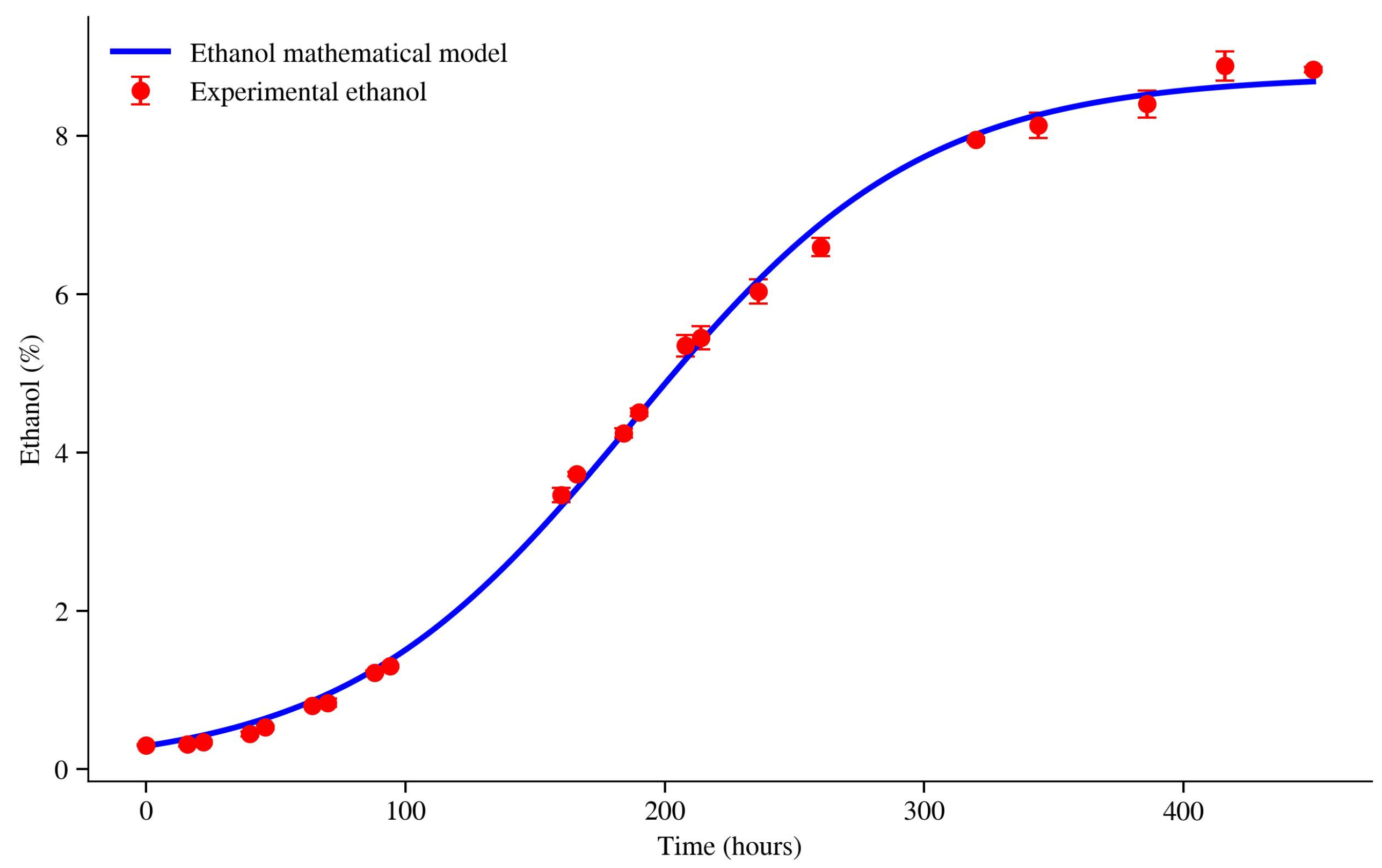 42]. The fitted logistic model yields an asymptotic ethanol concentration of E