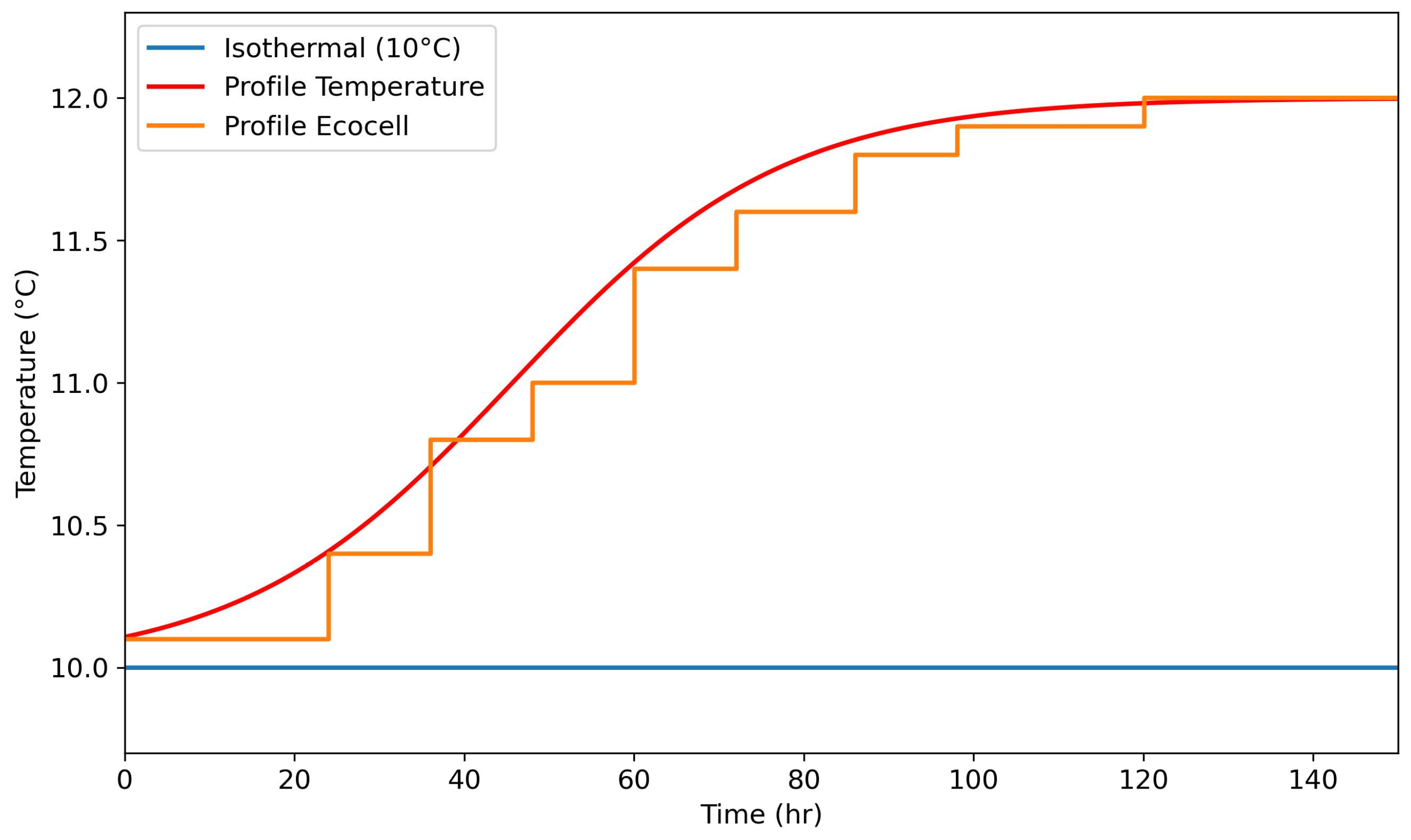 43] reported the technical feasibility of these stepped temperature profiles by adjusting the set-point at regular intervals (e.g., every 10–14 h), so that the equipment can reproduce the theoretical trajectory in segments. Reference [
