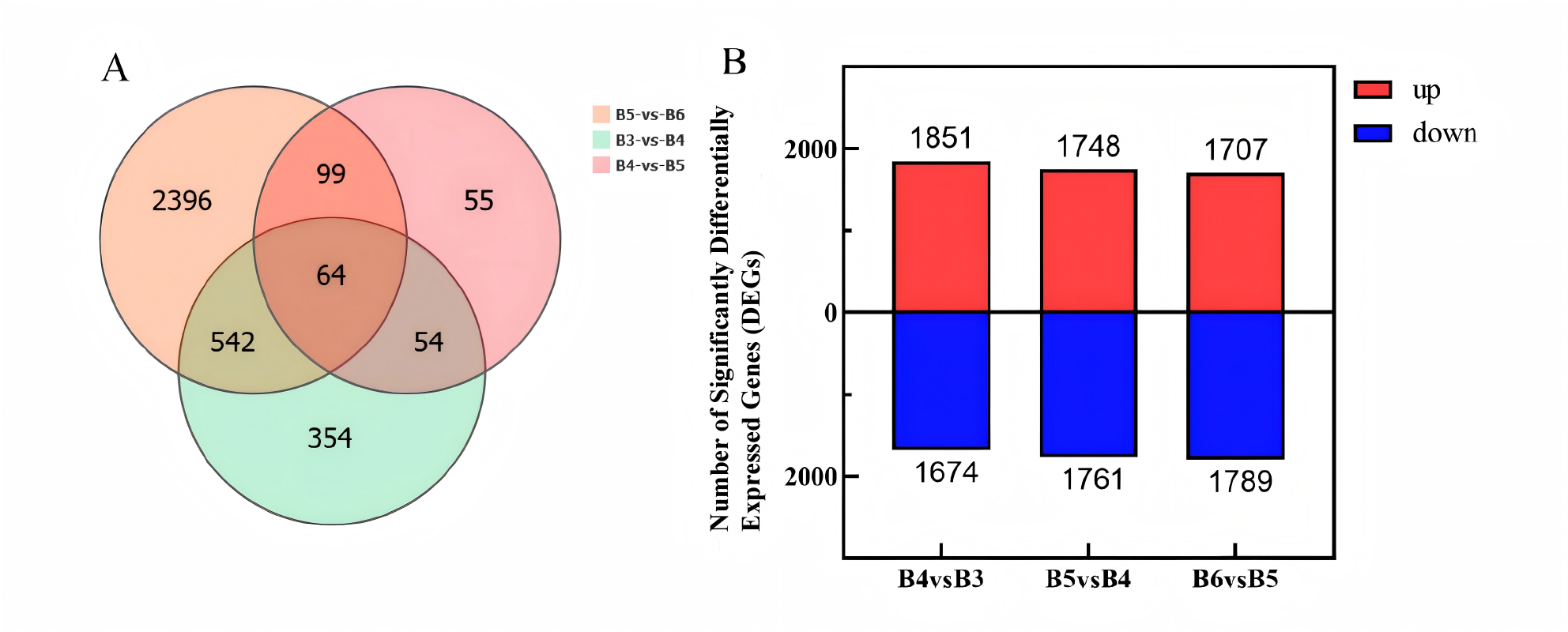| Gene | Log2(B4/B3) | Log2(B5/B4) | Log2(B6/B5) | Annotation |