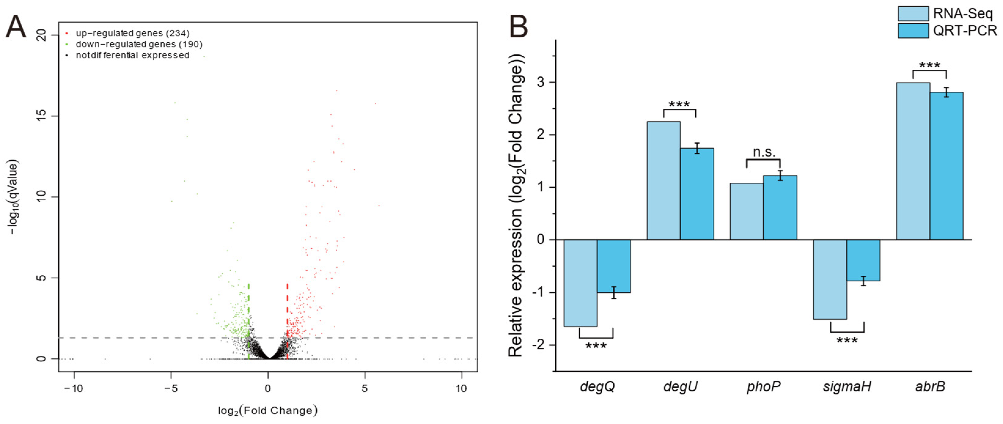 - Zhang, Q.; Zhu, W.; He, S.; Lei, J.; Xu, L.; Hu, S.; Zhang, Z.; Cai, D.; Chen, S. Understanding energy fluctuation during the transition state: The role of AbrB in Bacillus licheniformis. Microb. Cell Factories 2024, 23, 296. [Google Scholar] [CrossRef]