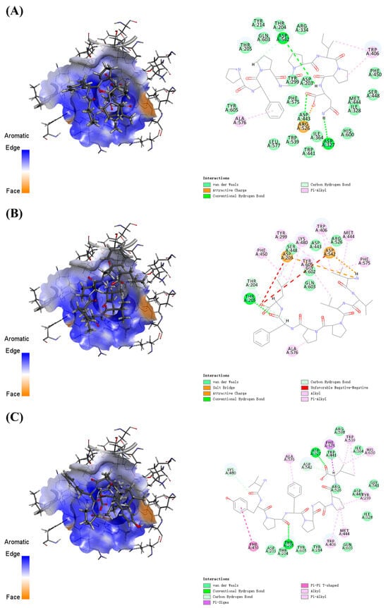 | VYPFPGPI | Thr205, Asp327 | none | Phe450, Trp406, Met444, Tyr299, His600, Trp539, Phe575, Ala576 |