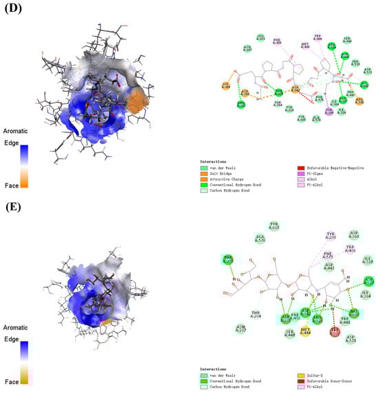 | Ligand | Hydrogen-Bonding Interactions | Electrostatic Interactions | Hydrophobic and π-Related Interactions |